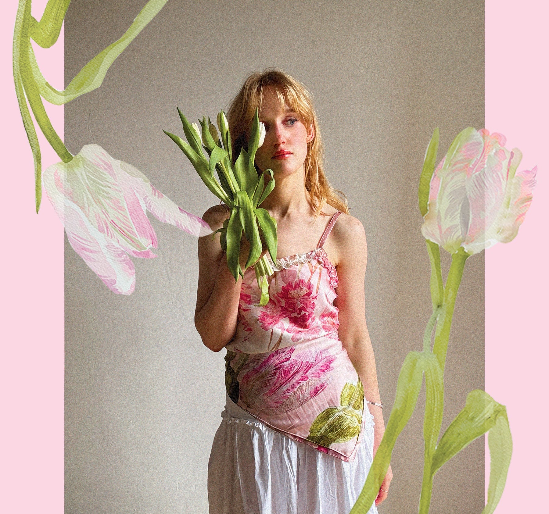 Think hand-painted seasonal blooms, soft, feminine hues and pure 100% silk. The perfect layering pieces to add colour and texture to your outfits, making them feel more like you.